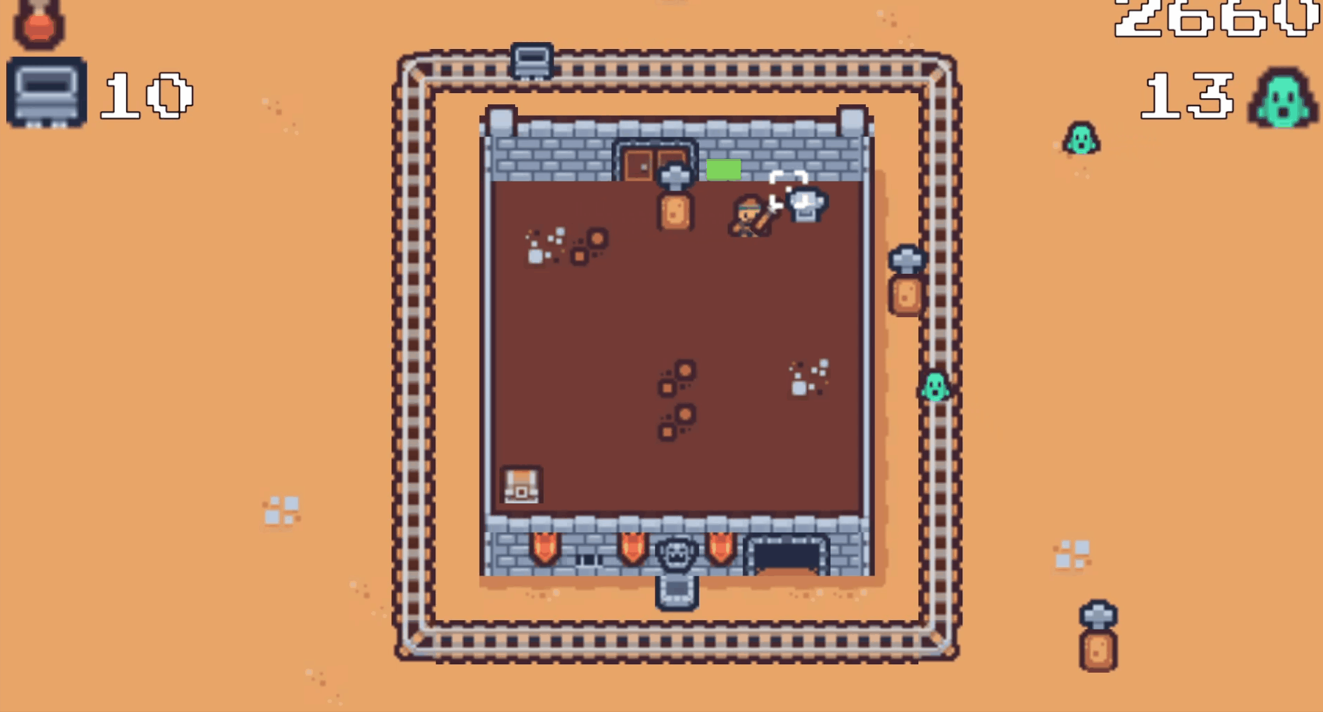I had a building in the middle of the screen encircled by train tracks in a desert location. I experimented with colliders in Tilemaps and build separate Game Objects for the building and train tracks. At this point it just kinda made sense to add a cart to the project and to see whether I could animate it to constantly move around the building. Once I had the cart circling the building with Unity's inbuilt animation system, it kinda made sense to have a player character with some top down movement. With these fundamentals in my project it was time to consider the game jam and the theme - due to the time spent learning about Tilemaps and building the level I had no idea how much time I truly spent "on the project". If I abandoned what I had and started a fresh scene with the knowledge acquired, I could safely had constructed a game to match the theme and had the full three hours at my disposal. I decided to go with the second option and to just... keep working on this little scene I had going. I had another three full days if I wanted to create a game in three hours to be eligible for the jam.